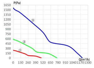 The 17251D series supports multiple speed configurations, reaching up to 9,500 RPM, with airflow up to 1203.8 m³/h and static pressure as high as 1562.6 Pa.