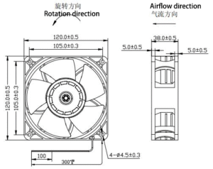 12038B DC Axial Flow Fan — 120.0 × 120.0 × 38.0 mm