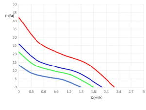 | Model | Voltage (V) | Operating Voltage Range (V) | Power (W) | Speed (RPM) | Airflow (m³/h) | Static Pressure (Pa) | Noise (dBA) | Curve |