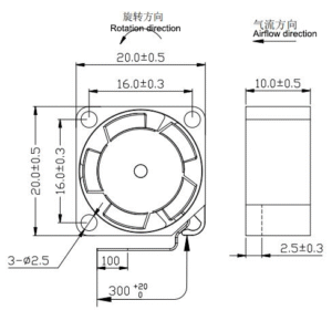 2010A DC Axial Flow Fan — 20.0 × 20.0 × 10.0 mm