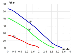 | Model | Voltage (V) | Operating Voltage Range (V) | Power (W) | Speed (RPM) | Airflow (m³/h) | Static Pressure (Pa) | Noise (dBA) | Curve |