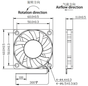6010A DC Axial Flow Fan — 60.0 × 60.0 × 11.0 mm