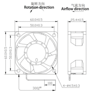 6025B DC Axial Flow Fan — 60.0× 60.0× 25.4 mm