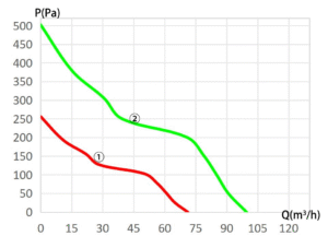 | Model | Voltage (V) | Operating Voltage Range (V) | Power (W) | Speed (RPM) | Airflow (m³/h) | Static Pressure (Pa) | Noise (dBA) | Curve |