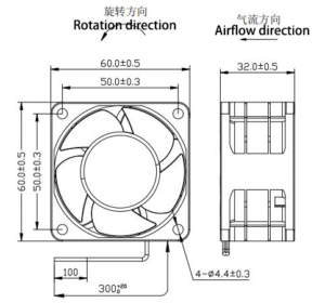 6032A DC Axial Flow Fan — 60.0× 60.0× 32.0 mm