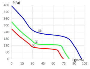 | Model | Voltage (V) | Operating Voltage Range (V) | Power (W) | Speed (RPM) | Airflow (m³/h) | Static Pressure (Pa) | Noise (dBA) | Curve |