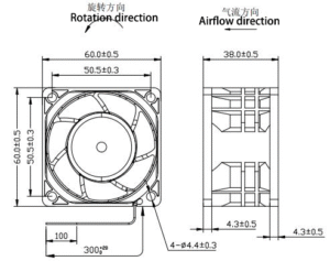 6038A DC Axial Flow Fan — 60.0× 60.0× 38.0 mm