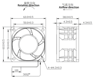 6038B DC Axial Flow Fan — 60.0× 60.0× 38.0 mm
