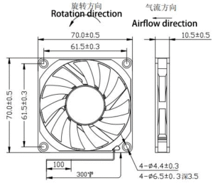 7010A DC Axial Flow Fan — 70.0 × 70.0 × 10.5 mm