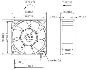 9238A DC Axial Flow Fan — 92.0 × 92.0 × 38.0 mm